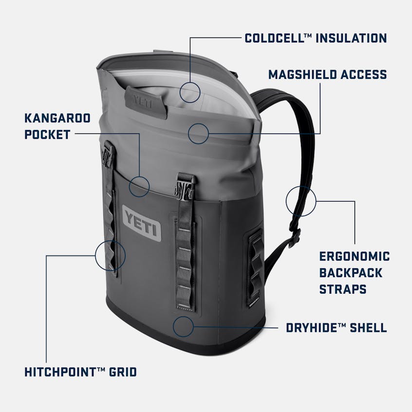 When you’ve got a few pals, a few refreshments, but the lake is a few miles down the trail, the YETI® Hopper® M12 Backpack Soft Cooler has your back. It’s the perfect refreshment hauler for any day trip or side mission. This comfortable, easy-to-open (and stay open) cooler was designed to fit wine